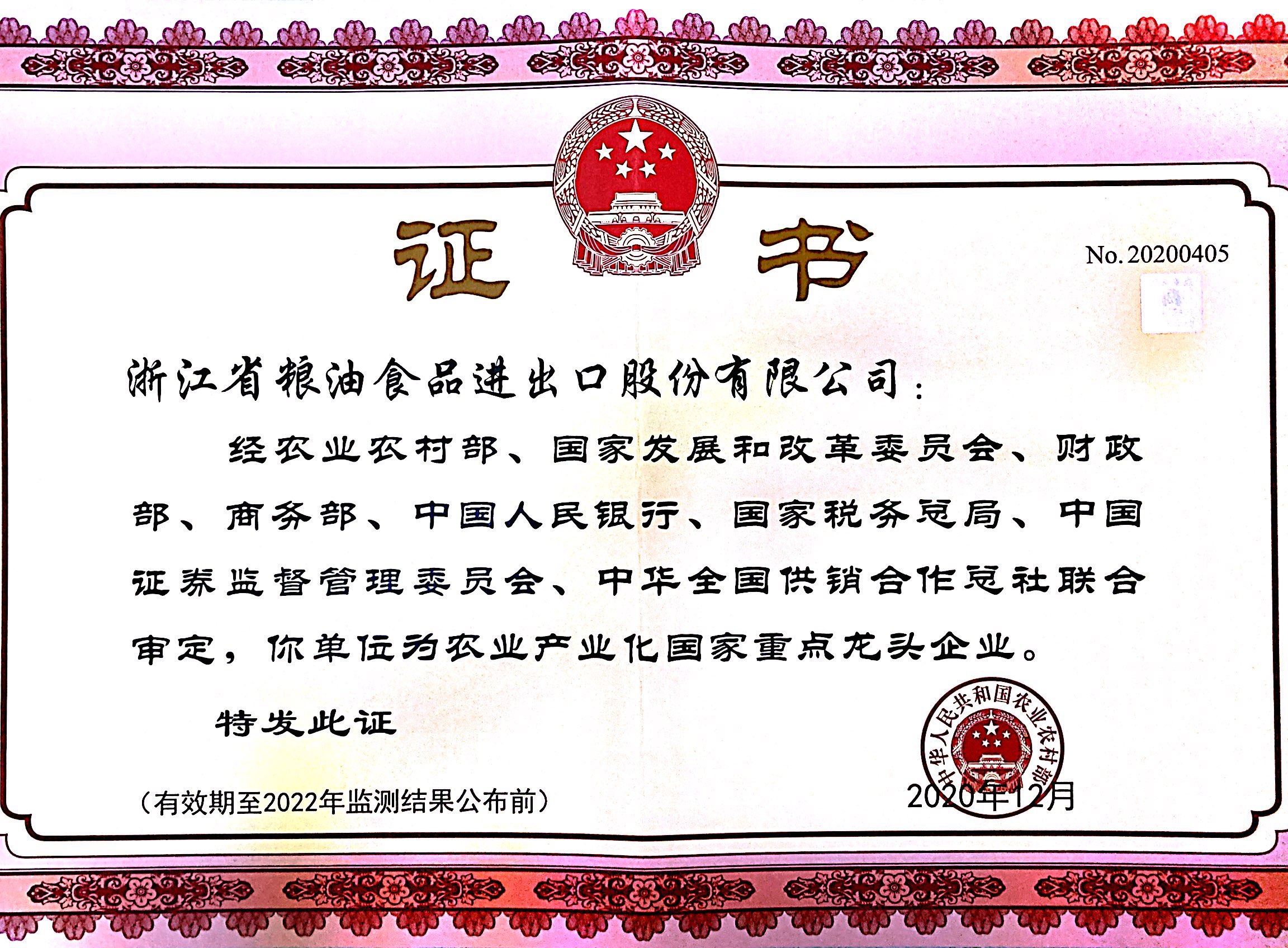 浙江糧油、寧波天韻入選農(nóng)業(yè)產(chǎn)業(yè)化國(guó)家重點(diǎn)龍頭企業(yè)名單